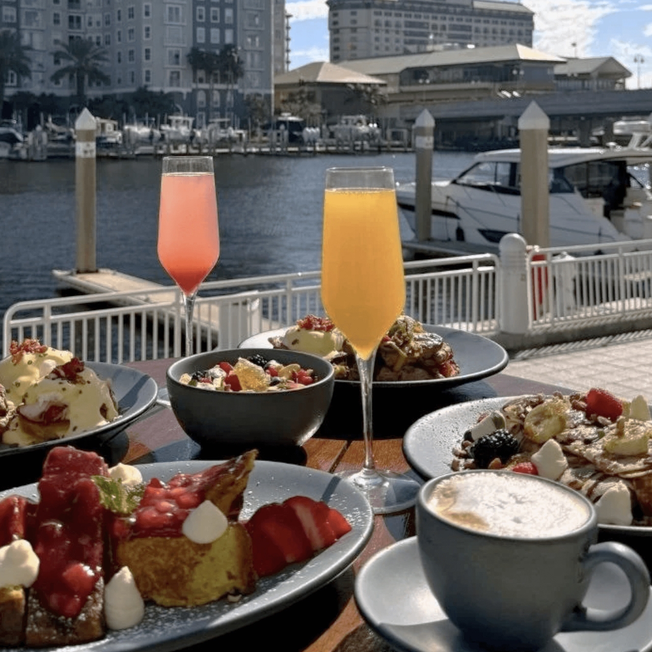 Dine Along Tampa's Famed Riverwalk. As Water Street Tampa's newest breakfast oasis, Riverwalk Terrace provides guests with the ultimate waterfront backdrop alongside a delectable breakfast and brunch menu, curated by Tampa Marriott Water Street's incredible culinary team.