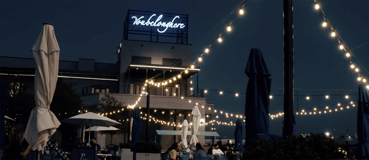 Standing above Sparkman Wharf and serving as both geographic identifier and guiding principle, Tavares Strachan’s monumental text-based neon installation proclaims “You Belong Here.”